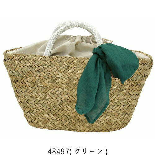 【SALE】カゴバッグ 籠バッグ【48496完売】【48497】【48498完売】バッグ かごバック カゴバッグ シーグラス 無地スカーフ付き 水草 ビーズ ハンドル 巾着 雑材 カゴ バッグ バスケット きんちゃく 天然素材 おしゃれ かわいい シンプル ナチュラル