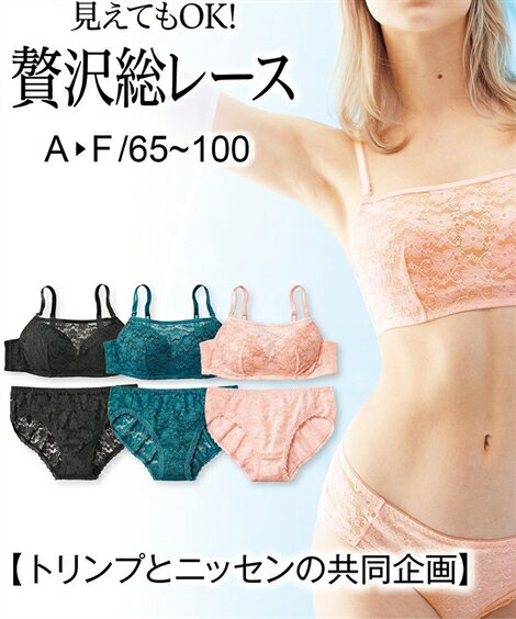 【ブラックフライデー ポイント10倍以上】 ブラジャーショーツセット (B85/L-LL-D100/4L-5L) 大きいサイズ 総レース ブラジャー ショーツセット ( トリンプ ) ニッセン nissen 谷間見え防止 TRN